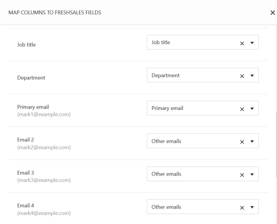 - In case the primary email field is not mapped, then the first email mapped to the other emails field is used as the primary email.